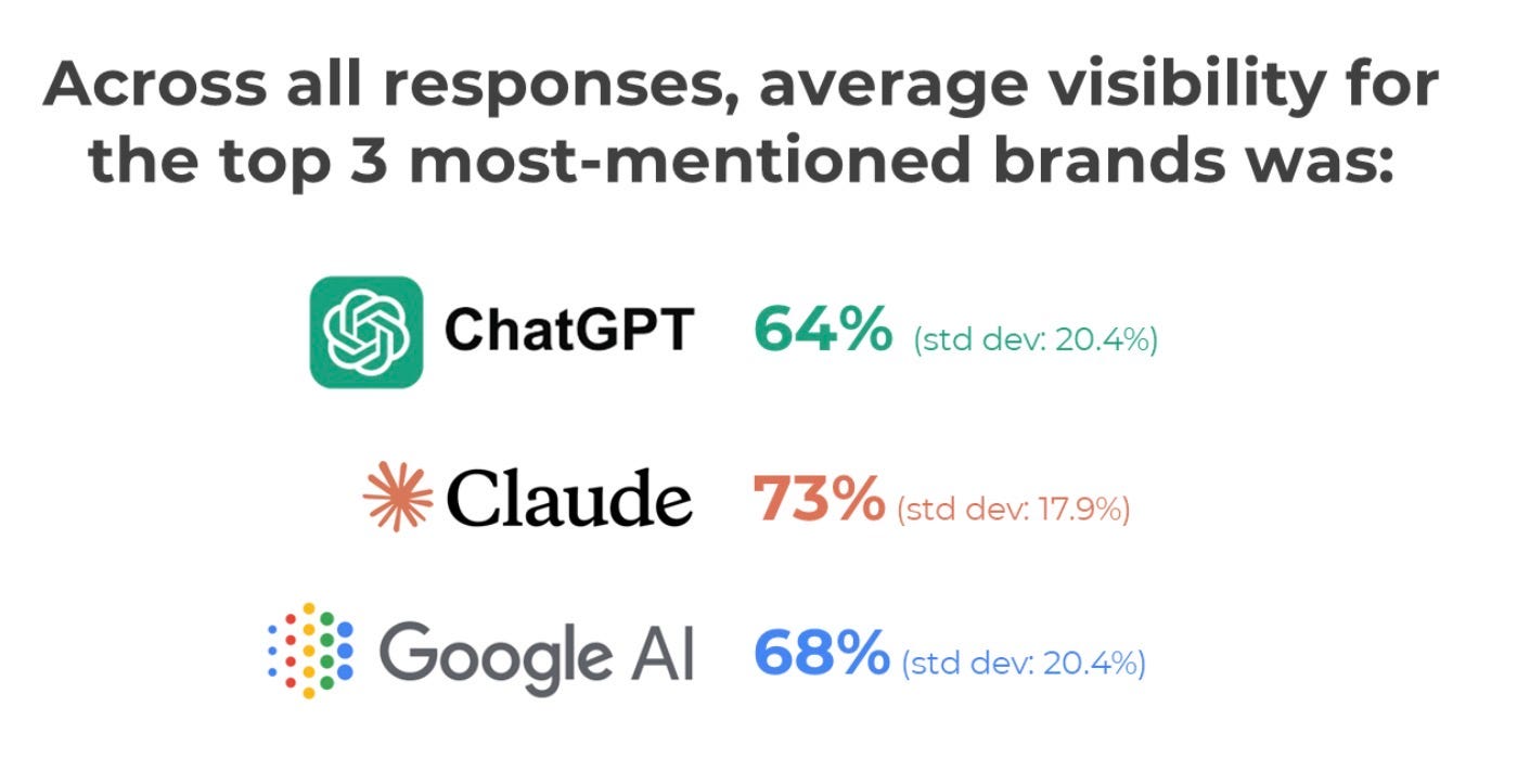 But persistent, high‑frequency presence across the messy, randomized reality of AI responses.