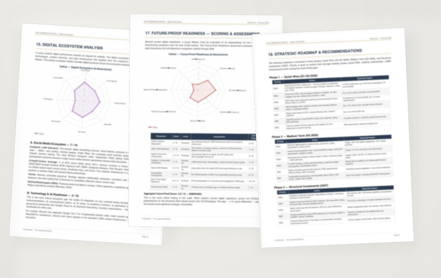 → AI & Agentic Commerce assessment — GEO readiness, llms.txt audit, agentic commerce protocol checklist. The section no other luxury audit includes.